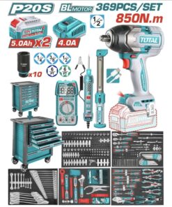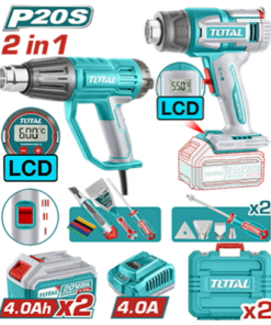 طقم كومبو 20فولت 2قطعة مسدس تسخين20فولت 2بطارية 4امبير ومسدس تسخين ديجيتال 2000وات توتال_TOSLI241188