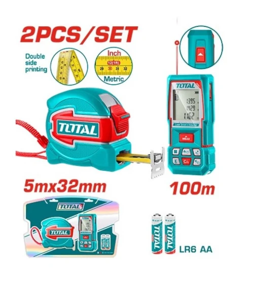كومبو 2قطعة متر ليزر 100متر ومتر 5متر توتال_TOS250902M
