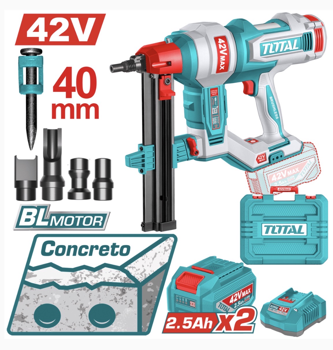 مسدس خرسانة 42فولت 4سم 2بطارية 2.5امبير توتال_TCNLI420602